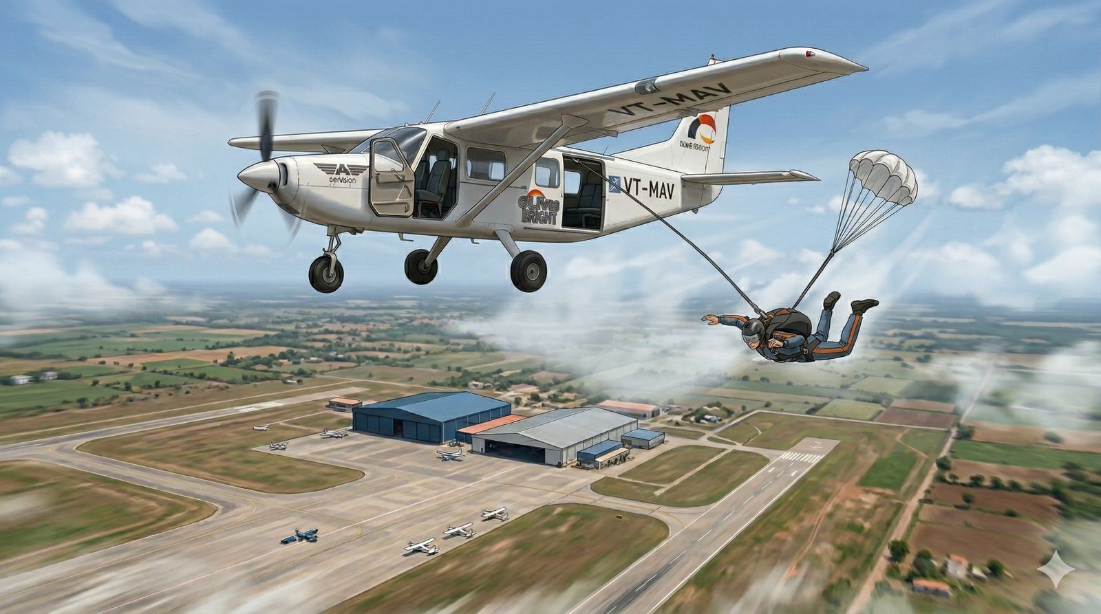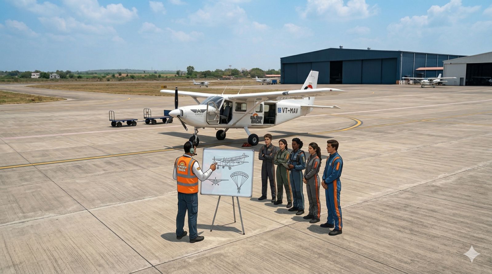 The training session usually takes a few hours and covers aircraft exit techniques, parachute control basics, landing procedures, and radio communication guidance.